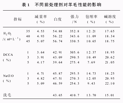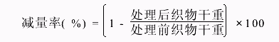 張瑞萍蔡再生(1東華大學化學化工學院,上海 226007;2南通大學化學化工學院,江蘇南通 226019) 摘要:文章探討了不同前處理劑、蛋白酶和TG酶對羊毛織物抗氈縮性能及對纖維損傷和織物強力等的影響。結果表明:通過TG酶的作用,可以提高織物的強力,降低纖維的堿溶度,使羊毛纖維的損傷得到補救;采用氧化前處理與蛋白酶及TG酶三者結合新工藝,可以在保證纖維損傷小的前提下,提高織物的抗氈縮性。關鍵詞:羊毛織物;蛋白酶;TG酶;防氈縮整理中圖分類號:TS19229 文獻標識碼:A 文章編號:10031456(2007)01001004 近幾年,由于環境問題日益為人們所重視,尋找合適的酶制劑代替氯化工藝已成為羊毛防氈縮研究的熱點。用蛋白酶對羊毛進行減量處理,進而使羊毛織物達到防氈縮目的的研究國內外均見報道。但由于蛋白酶對羊毛處理的不均勻性,造成了羊毛纖維較大的損傷,限制了其工業化應用。本研究選用一種新型生物酶,與傳統的氧化、蛋白酶處理結合共同處理羊毛織物,使蛋白質改性,達到防氈縮的同時,還可減少織物強力損失。1 實驗部分11 實驗材料及主要化學藥品純毛織物,釋氯劑DCCA,二氯異氰尿酸鈉(工業用),次氯酸鈉(分析純),雙氧水30%(分析純),水玻璃(工業品),蛋白酶(工業品),TG酶(日本)。12 前處理H2O2處理條件:溫度50℃,浴比1∶20,時間60min,JFC適量;DCCA處理條件:溫度25℃,浴比1∶20,時間60min,JFC適量,pH值40;NaClO處理條件:溫度25℃,浴比1∶20,時間60min,JFC適量,pH值30;脫氯工藝:Na2SO33%(owf),溫度30℃,浴比1∶20,時間20min,NaCO3調節pH值至8~9之間處理8min,溫度45℃。1.3 酶處理根據工藝參數配置酶液,把羊毛浸入其中,在一定溫度下處理一定時