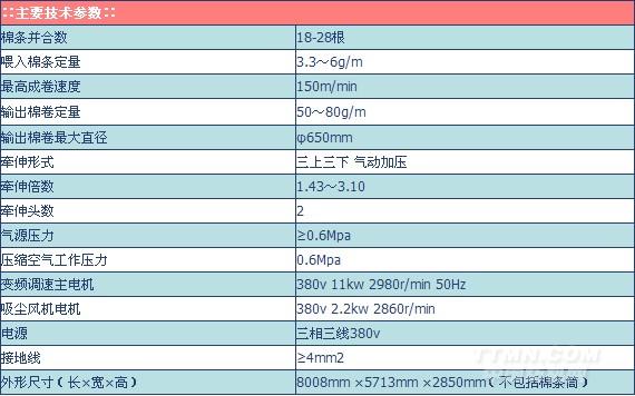成卷加壓:棉卷卷繞時加壓氣缸通過夾盤支架對棉卷徑向加壓,棉卷夾盤由夾盤氣缸推動,支持筒管對棉卷軸向加壓,從而使棉卷成卷既緊密兩端又平齊。