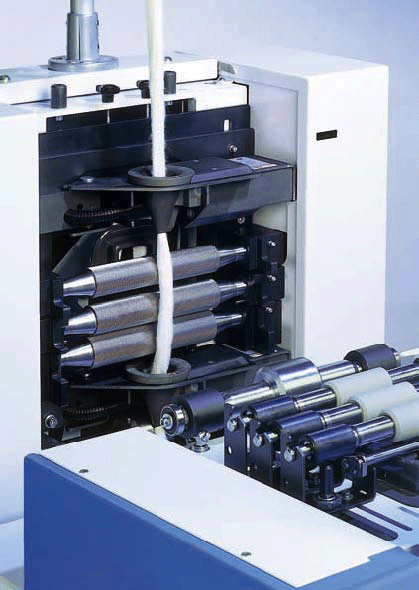 開放式勻整并條機元件將生條直接喂入轉(zhuǎn)杯紡紗機,使紡紗流程最短。帶方形條筒裝置的一體化并條機IDF完全能勝任這個任務(wù)。