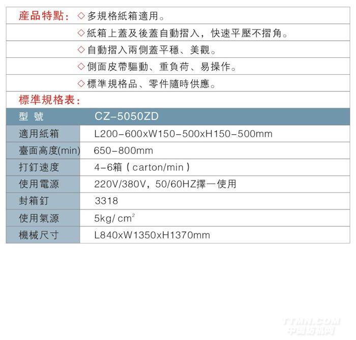 CZ-5050ZD半動自折蓋打針封箱機