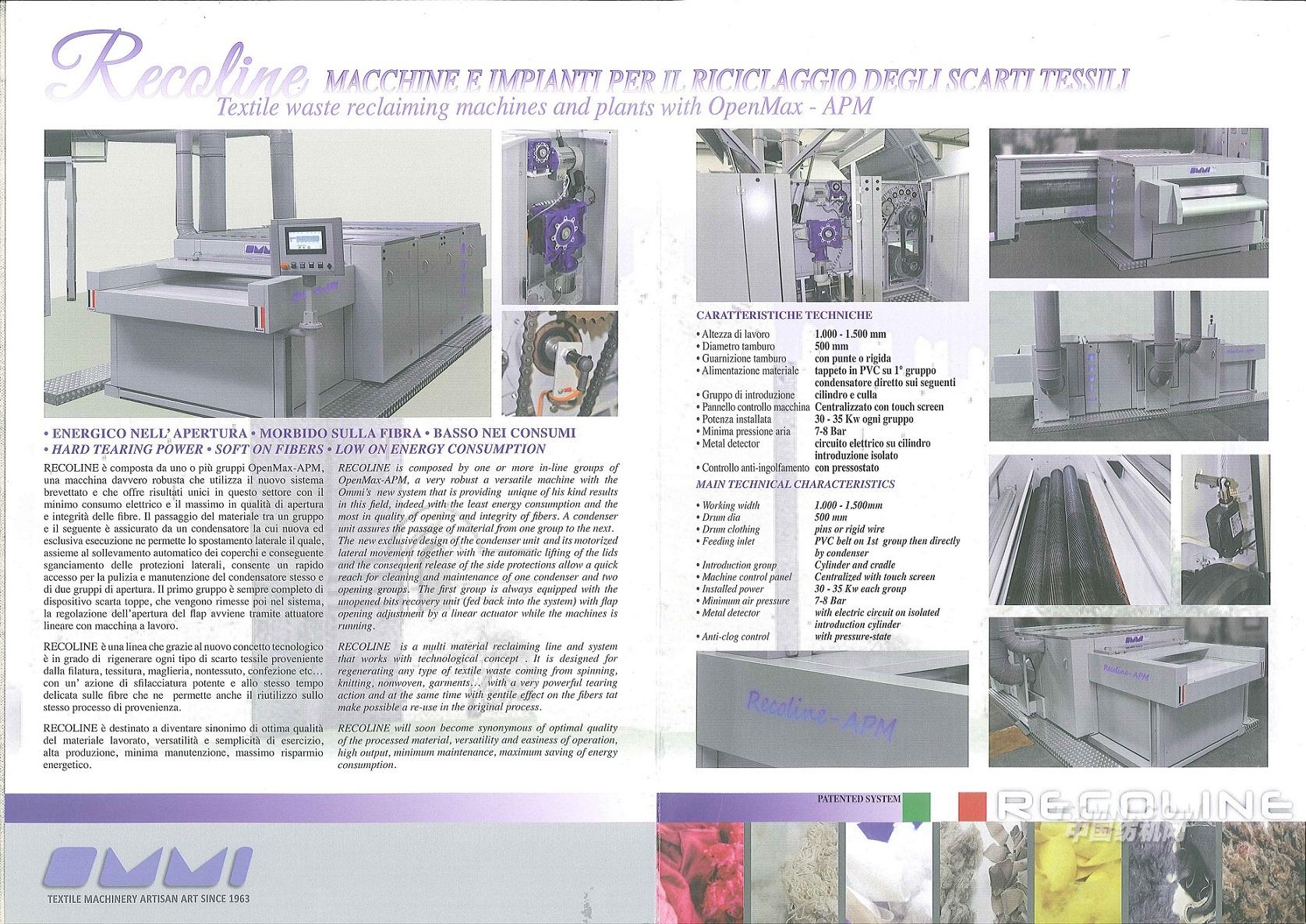 RECOLINE 配置OpenMax – APM多功能多用途神奇開松機的廢舊紡織品