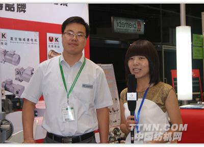 我們現(xiàn)在最主要的就是跟日企做一個比較,比方說減速機(jī)從訂貨到交貨,都是有我們自己的一個優(yōu)勢。比如這款減速機(jī),在日本的訂貨交貨周期是45天到60天,而我們的這個周期是15天到20天。另外成本方面比使用日企產(chǎn)品也有較大的競爭力。現(xiàn)在我們這款產(chǎn)品主要是做推廣,運(yùn)用于化纖、棉紡、清疏聯(lián)生產(chǎn)線、后整理。后整理它將是以后運(yùn)用的最大的市場,所以通過這次展會上對這款產(chǎn)品的認(rèn)識和了解,客戶的反響還是蠻好的。我們希望通過這次展會推廣這款產(chǎn)品,能在紡機(jī)行業(yè)提高它的市場份額,提高我們產(chǎn)品在行業(yè)里的知名度,為我們國內(nèi)的紡織行業(yè)提高效能的同時降低成本。今天非常感謝中國紡機(jī)網(wǎng)TTMN.COM的采訪。好!謝謝!
