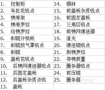 ·前、后固定蓋板及刺輥分梳板;
