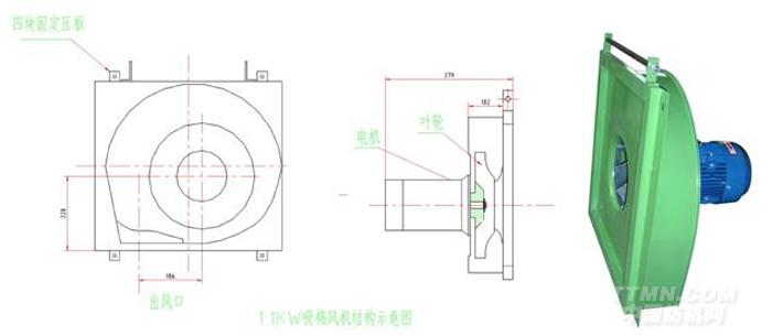 ②1.5KW電機,所配的葉片直徑為370mm,風量1600立方/分鐘,負壓600-900帕,配套細紗機錠數有408、420和456錠。