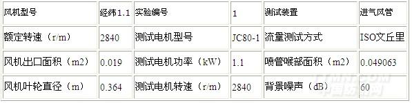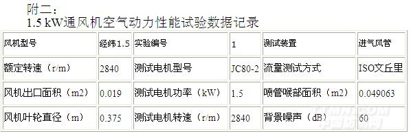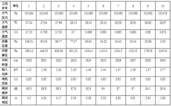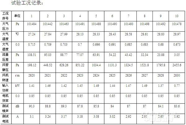 1.1KW通風機空氣動力性能試驗數據記錄