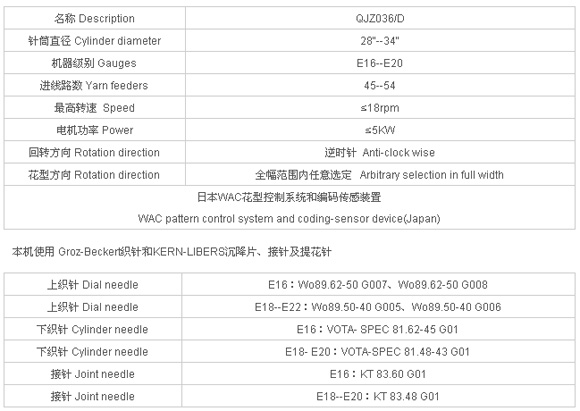 本機系計算機控制的雙面提花、移圈羅紋機。通過選針可使織針呈編織、集圈、移圈、平針等狀態,以編織各種提花組織的坯布及提花移圈坯布。選配氨綸裝置,可生產高彈力織物。采用新型通用機架(二項發明專利,二項實用專利)和進口鋼絲軸承。