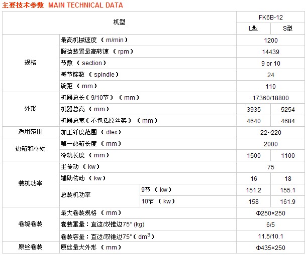 FK6B(S)-12型機將變形熱箱,冷卻板,假捻器按直線絲路排列,冷卻板長1100mm,加強冷卻效果。