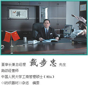 在優(yōu)秀企業(yè)家戴步忠先生的正確率領(lǐng)下,緊緊抓住紡織工業(yè)結(jié)構(gòu)調(diào)整歷史機(jī)遇,務(wù)實(shí)進(jìn)取,開拓創(chuàng)新。致力提高產(chǎn)品自主化水平,將新技術(shù)、新工藝、新材料的廣泛運(yùn)用到產(chǎn)品中,努力提高梳理器材的技術(shù)水平和可靠性為切入點(diǎn);深化產(chǎn)學(xué)研模式,推動產(chǎn)品結(jié)構(gòu)優(yōu)化升級。將企業(yè)培育為一流紡織器材制造商和供應(yīng)商,為紡織企業(yè)做大、做精、做久再立新功。