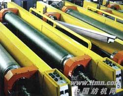 由于印花臺呈傾斜狀態,因此提高了所有作業的效率,縮短了花版的裝卸時間。更值得一提的是,為了提高圓網印花機的運轉效率,此裝置免去了圓網的拆卸清洗,實現了自動清洗(參閱上圖照片)。