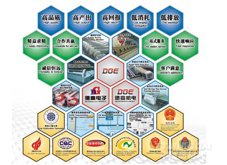 經過十多年的發展,打造出DGE、德高電子、德高機電三大品牌,研制成功圓網印花機、平網印花機、染整工藝參數在線測控等三大系列產品。公司以客戶滿意為宗旨,建立了24小時快速響應機制,提供一站式服務,為實現“高品質、高產出、高回報、低消耗、低排放”的客戶價值而持續努力。