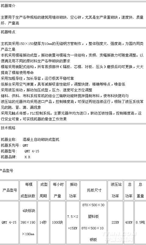 - [產品]-->砌塊機 QMY 4-15