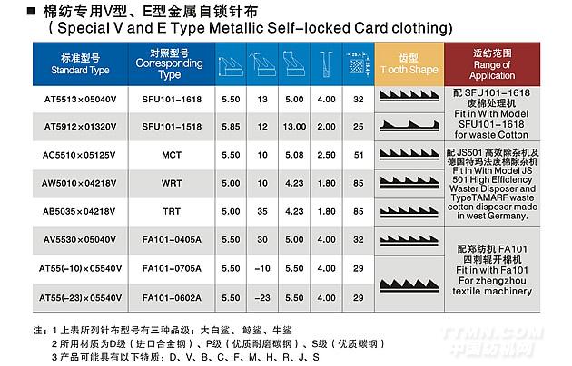 棉紡專用V型、E型金屬自鎖針布