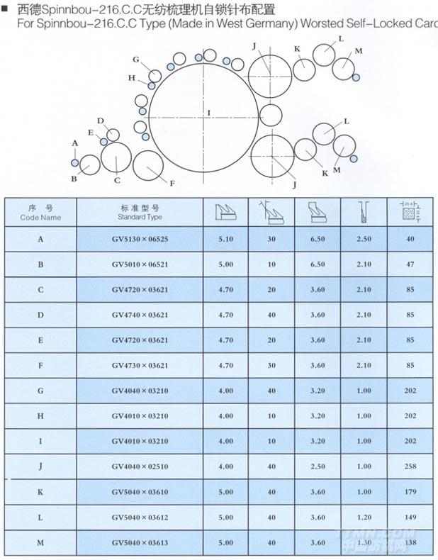 您所在的位置:紡機網 >> 光山白鯊針布有限公司 >> 西德Spinnbou-216.C.C無紡梳理機自鎖針布配置