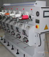XW3-9型精密絡筒機是興瑋機械有限公司于2013年推出的一款專門適用于各種短纖維及長纖維紗線的松式-緊式絡筒。該機采用了先進的數(shù)控技術,使群控與單控相結合,觸摸屏顯示數(shù)據(jù),自動計長、斷紗自停、恒張力。卷繞電機與超喂電機獨立智能傳動,實現(xiàn)了筒紗的卷繞速度、張力、壓力,與超喂部分的最佳配合,使其在啟動、運行、停止的各時間段都能保持一個固定的超喂比,克服了在啟動、停止過程中因超喂過大或過小引起的亂絲斷線及成型不良等缺陷,最終使紗線透氣性強染色更加均勻。