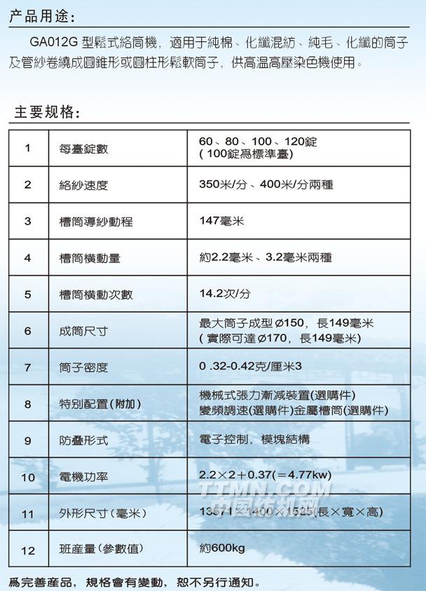 GA012G型松式絡(luò)筒機