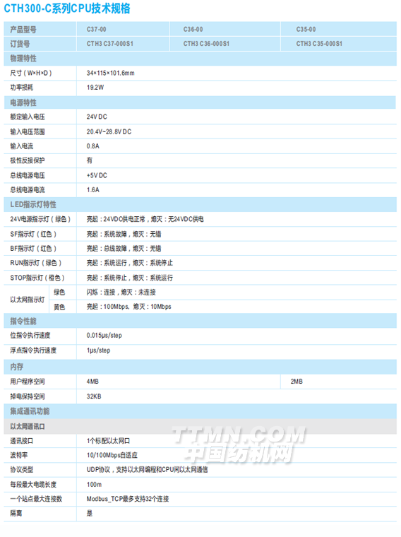 CTH3-C系列運動控制型CPU,2MB程序數(shù)據(jù)空間,32KB掉電保持?jǐn)?shù)據(jù),55M擴展總線;